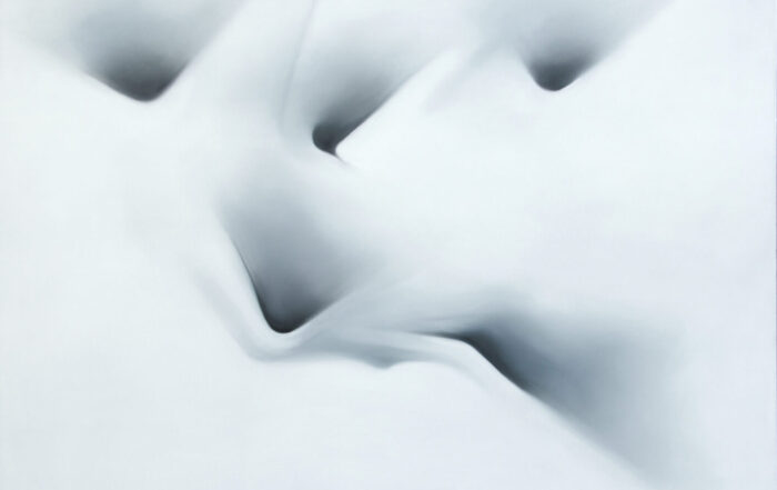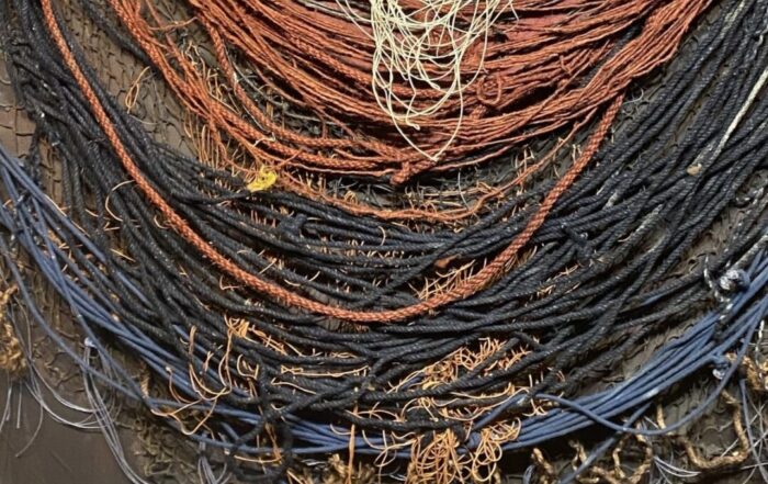 Ciało Chrystusa łagodnie, gotycko jeszcze opada z drewnianej konstrukcji. Przybito je gwoździami.