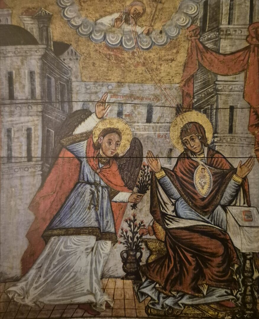 Zwiastowanie: - awers ikony procesyjnej z cerkwi św. Paraskewy w Radrużu, tempera i złoto na podobraziu drewnianym, ok 1648 r.